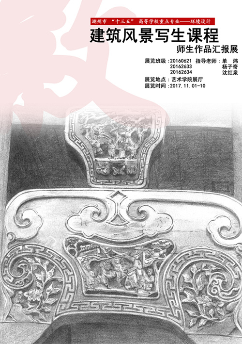 建筑风景写生课程是环境设计专业学生必修的实践性课程之一,学生通过集中时间的外出实地写生,增强学生对徽派建筑的进一步认识,培养学生对生活的热爱与关注、对劳动人民的真情与实感,训练描绘物象、捕捉生活灵感的能力,为今后艺术创作与设计积累素材,增强综合文化艺术修养。本次展览将学生、教师写生作品共同展览,既是对学生本次课程学习成果的集中展示,也展现了教学相长、共同进步的过程,是艺术学院作为学校首批人才培养模式改革试验区深化教学改革、提升人才培养质量的重要举措。本次展览持续到11月10日,欢迎大家前来观看指导。