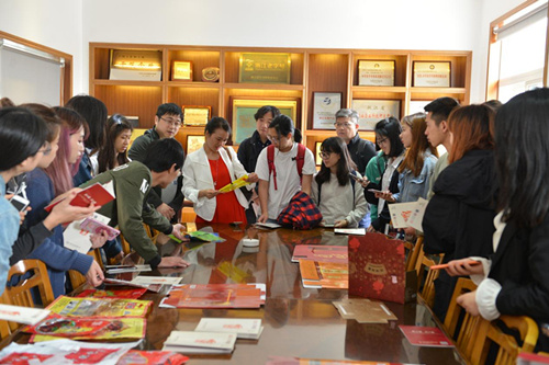 在结束参观之后,交流设计工作坊又走访了赵老师的公司——共创伟业,各位老师间有一个简短的交流沟通。这是一个在2013年创立的公司,主要做湖州周边的各种设计,获奖颇多。老师的一句话让师生们感触颇深,他说:“作为一个高校老师,我们有责任去给市场一个引导,从而提升社会的审美。作为一个高校,我们的职责是服务地方,体现其价值。”