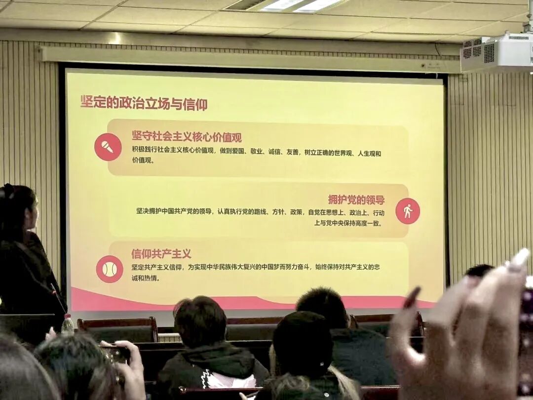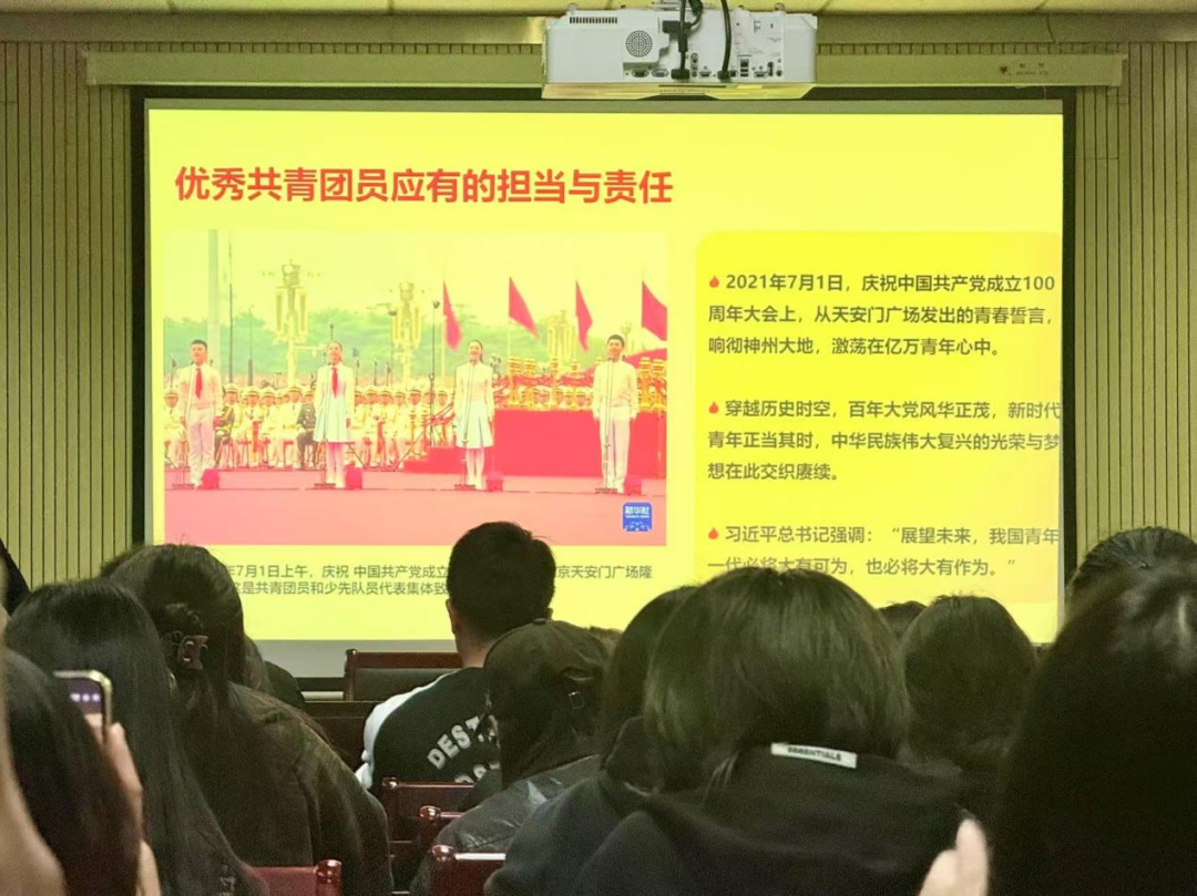 在课程讲解中,陈祎老师强调了团员的重要角色。团员是先锋模范,是桥梁纽带。在实现中华民族伟大复兴的征程上,共产党员是先锋队,共青团是突击队,少先队是预备队。每一位共青团员都应明确自身定位,在青年群体中发挥积极引领作用,成为党和青年之间紧密联系的纽带,带领广大青年为国家发展贡献力量。