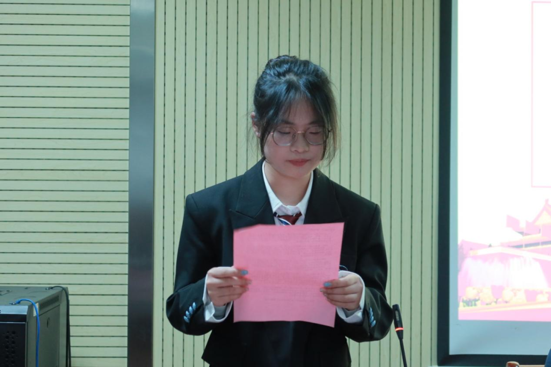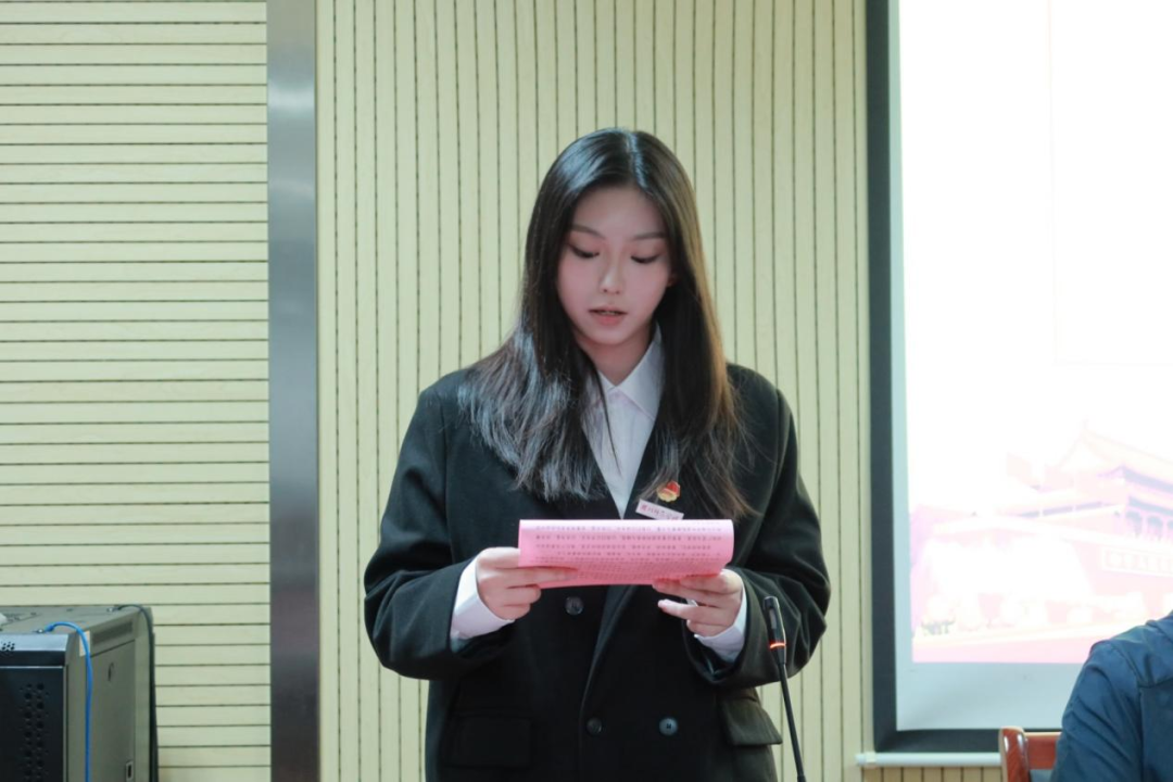陈祎老师对各位团校新成员表示了热烈的欢迎。她明确指出了共青团员的身份和义务,强调广大青年应当坚定共产主义信念,增强斗争意识,牢记初心使命,做到“请党放心,强国有我”。同时,陈祎老师还提出了三点建议:一是要不断锤炼过硬本领,展现青春本色,在面对困难时迎难而上;二是要时刻保持学习的热情和好奇心,不断提升自己的综合素养;三是要全心全意服务同学,勇于担当责任,将服务精神深深植根于同学之中。