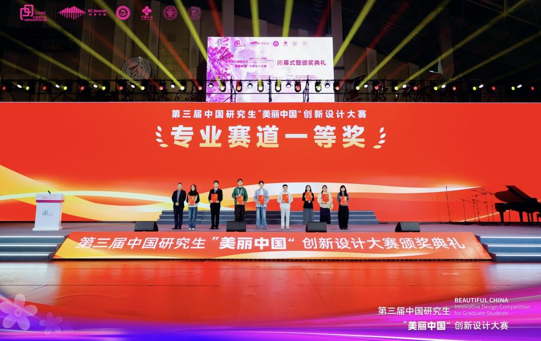 近日,由教育部学位与研究生教育司指导,中国学位与研究生教育学会、中国科协青少年科技中心主办的第三届中国研究生“美丽中国”创新设计大赛全国总决赛圆满落幕,我院研究生在服装与服饰设计、工业产品设计、环境空间设计、媒体传达设计四个赛道共斩获一等奖1项、二等奖3项、三等奖11项。其中,作品《旧纸·游迹》获得一等奖,孙梦婕教师荣获“优秀指导教师”称号。