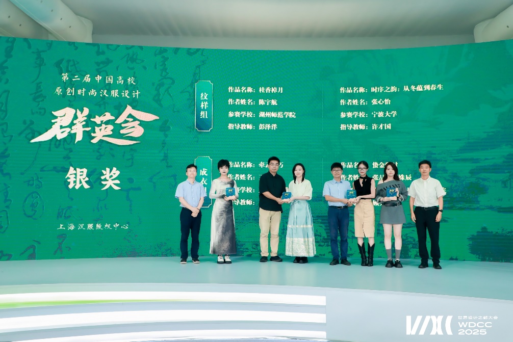 在颁奖典礼现场,艺术学院2023级服装设计专业学子陈宇航同学的纹样系列作品凭借对传统元素的创新表达斩获大赛纹样组银奖,作品被制作成系列实物在场馆亮相,引人驻足观赏。