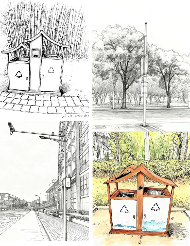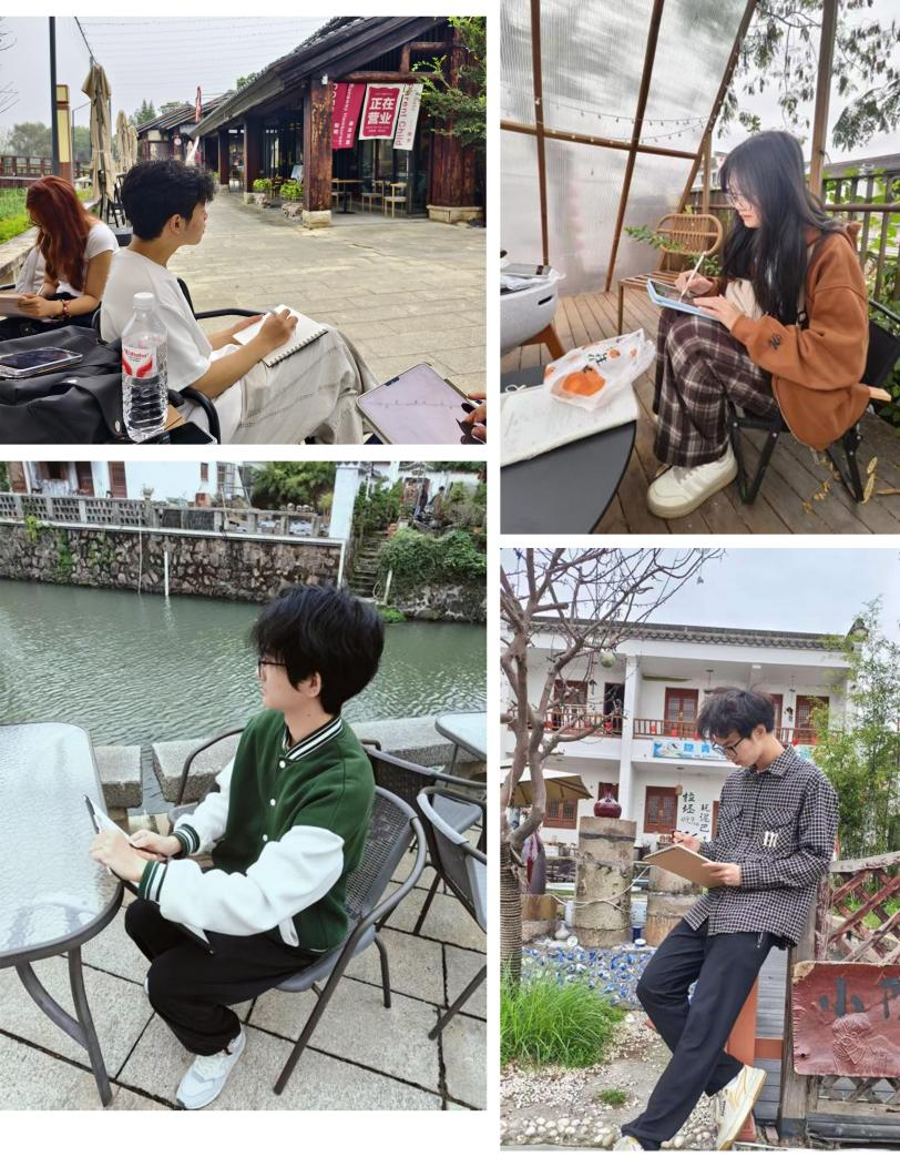 为期十天的《传统技艺与文化考察》课程,是一次从文化感知到设计实践的完整旅程:我们首先在湖州的西山漾、莲花庄、飞英公园和潞村进行写生,从自然景观与历史建筑中感受江南文化中的线条、质感与人文温度;随后前往杭州博乐工业设计公司交流并参观IF设计奖作品展,学习现代设计方法与市场转化逻辑;最后回到校园,将传统文化底蕴与前沿设计思维相结合,针对课桌椅、路灯、自动售卖机等校园设施的使用痛点,提出了更具人性化的改良方案。整个过程让我们深刻认识到,好的设计既源于对生活细致的观察,能够切实解决问题,也离不开对文化的深度理解,以此传递出情感与温度。