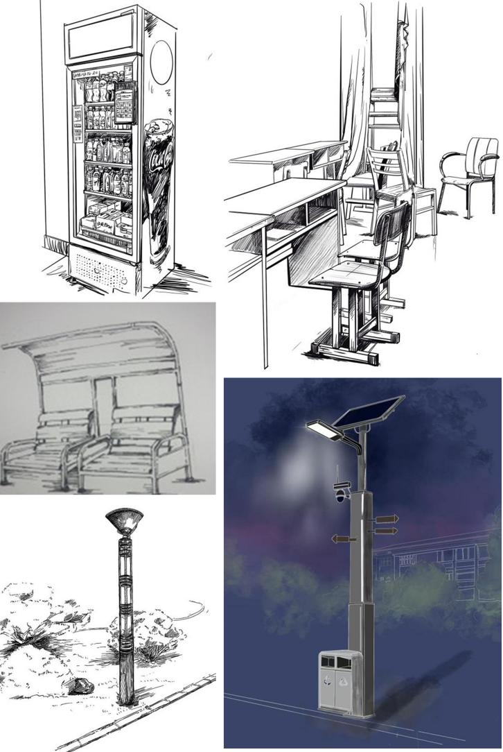 校外实践结束后,同学们随即带着全新的设计视角回归校园,对熟悉的建筑与公共设施展开了一场“设计审视”。大家从真实的用户场景与行为出发,细致观察并分析了教室课桌椅、路灯、自动售卖机、外卖柜等设施的使用痛点,并巧妙地将杭州之行的所见所学融入思考,最终提出了多份充满巧思、更具人性化的改良方案。