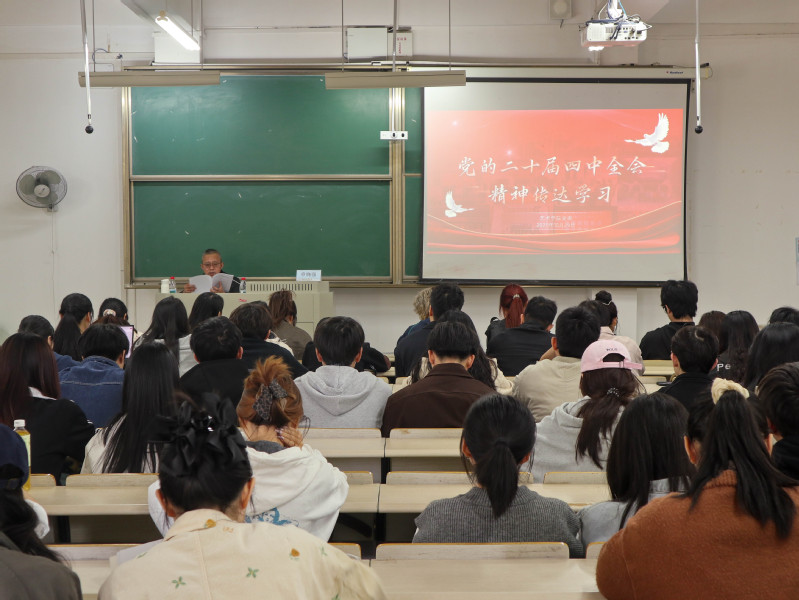 学院党委书记章晓强结合对《中国共产党第二十届中央委员会第四次全体会议公报》的解读,导学了党的二十届四中全会精神。他指出:二十届四中全会是在基本实现社会主义现代化的关键时期召开的重要会议,全会审议通过的《中共中央关于制定国民经济和社会发展第十五个五年规划的建议》,对未来五年发展作出顶层设计和战略擘画,是乘势而上、接续推进中国式现代化建设的又一次总动员、总部署,是“十五五”时期以中国式现代化全面推进强国建设、民族复兴伟业的纲领性文件和行动指南,对于动员和激励全党全国人民续写“两大奇迹”新篇章、奋力开创中国式现代化新局面,具有十分重大的意义;学习宣传贯彻好二十届四中全会精神,是当前和今后一个时期的重大政治任务。他从“提高站位、统一思想;强化宣传、凝聚共识;抓好贯彻、推动发展”三个方面,对学习贯彻全会精神作了部署。