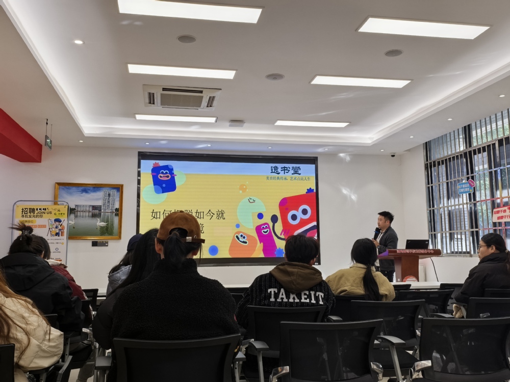 首场宣讲会由湖州市逸书堂艺术培训有限公司进行招聘推介。该公司专注于书法与美术培训,此次主要面向毕业生招聘书法教师、美术教师及教务老师等岗位。宣讲会上,企业代表详细介绍了公司的发展历程、企业文化、岗位职责、职业发展路径及薪酬福利待遇,并通过播放招聘宣传海报及视频,生动展示了其教学环境与团队风采。现场气氛活跃,不仅相关专业的毕业生认真聆听、积极咨询,不少低年级对书画艺术抱有浓厚兴趣的同学也到场了解,提前规划未来职业方向。