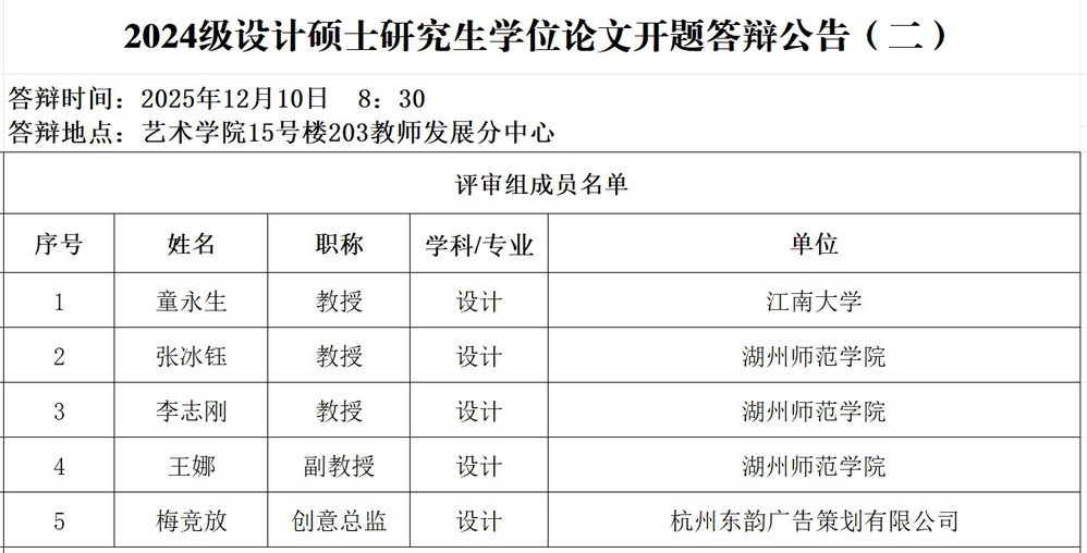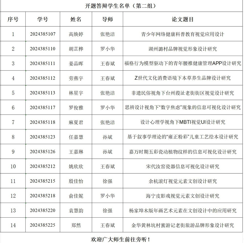 2024级设计硕士研究生学位论文开题答辩公告(二)