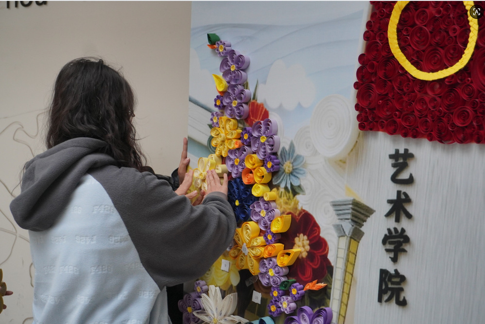 01 衍纸贴画绘学院风采,艺术共创筑坚定团心