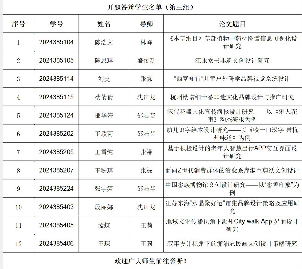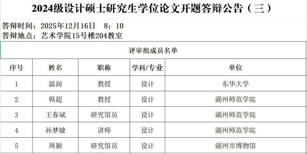 2024级设计硕士研究生学位论文开题答辩公告(三)