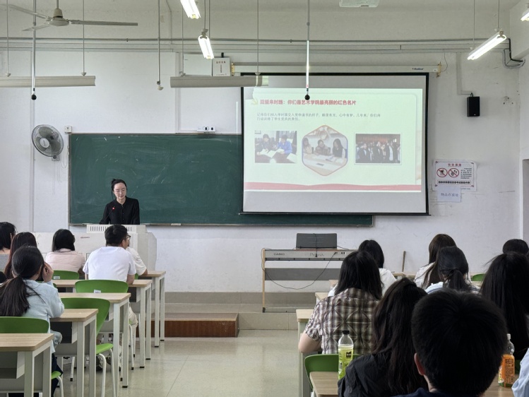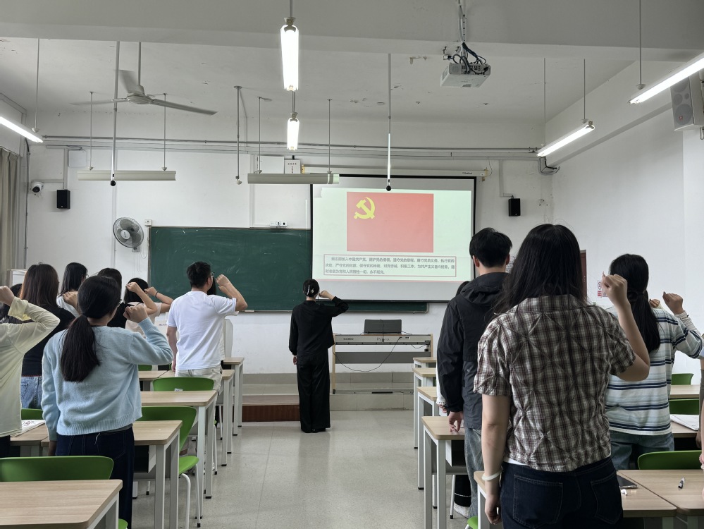 辅导员卢扬帆老师为全体毕业生党员讲授了在校期间的“最后一节党课”。她首先带领全体党员面对鲜红党旗,重温入党誓词,提醒每一位党员铭记初心与使命。卢扬帆强调,毕业生党员即将奔赴祖国各地、各行各业,无论身处何种岗位,都必须时刻牢记党员身份,严守党的纪律,永葆共产党人的政治本色。
