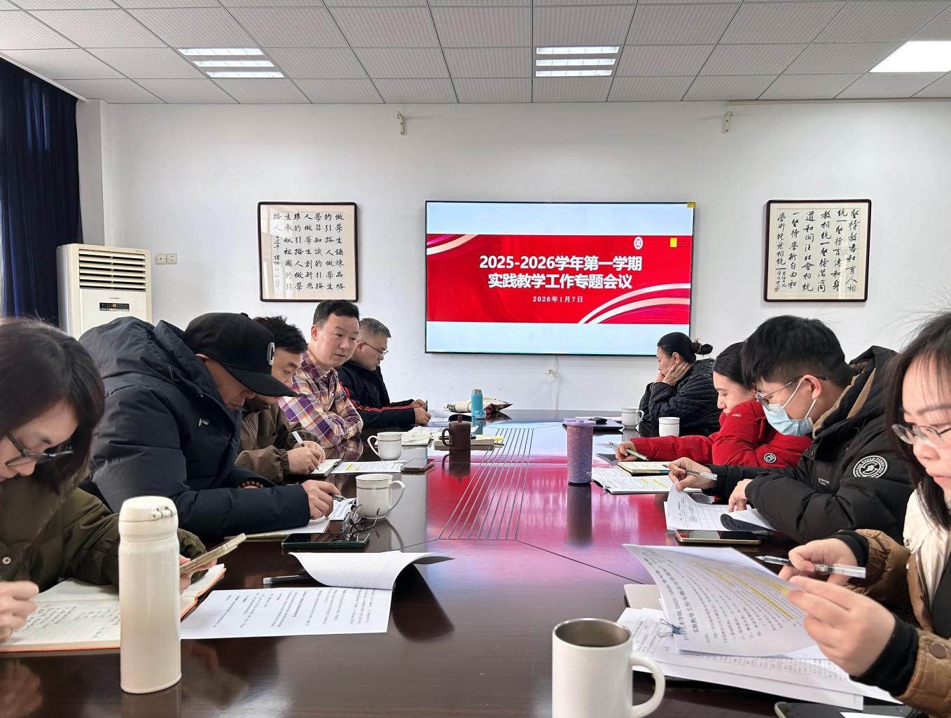 2026年1月7日上午,艺术学院召开2025-2026学年第一学期实践教学工作专题会,教学副院长杨子奇主持,各系正副系主任及教学办工作人员参会。