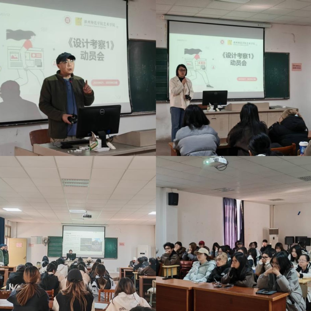 2026年3月12日,湖州师范学院艺术学院环境设计专业20250621班与视觉传达设计专业20250622班联合召开了设计考察动员会。设计考察作为艺术设计教育的重要实践环节,不仅是学生深入社会、感知文化、拓宽视野的关键途径,更是将课堂理论转化为设计灵感与创作素材的宝贵机会。