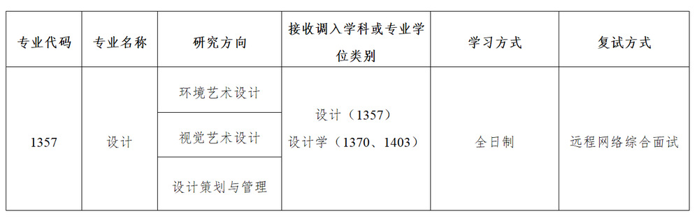 (二)设计专业硕士分三个研究方向(视觉艺术设计、环境艺术设计、设计策划与管理)招生,根据各方向招生计划数,分别对应相应研究方向考生的按本细则规定的总成绩排序规则依次录取。若拟录取考生自愿放弃录取资格或因招生计划动态调整等原因增加招生指标,则按本细则规定的总成绩排序规则依次补录取,补录取考生如已接受其他招生单位录取的则不予录取。