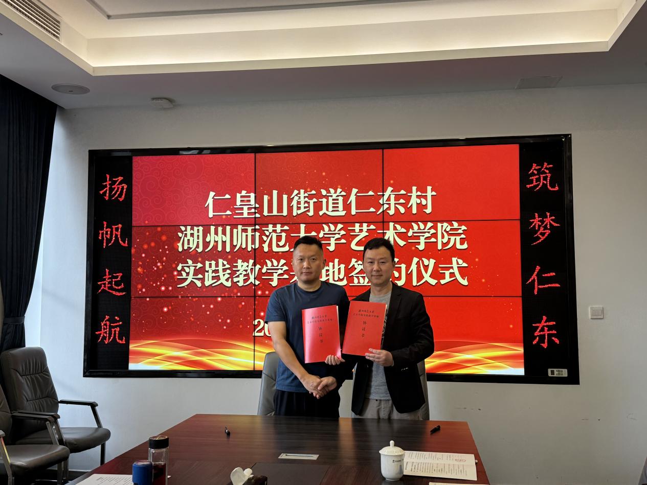 4月9日,湖州师范大学艺术学院与湖州市仁皇山街道仁东村集体经济组织举行“艺术学院环境设计系乡村共富实践教学基地”签约仪式。艺术学院副院长杨子奇、仁东村党委书记董飞代表双方签署协议,艺术学院环境设计系主任刘佳妮、副主任曾强参加签约仪式。签约后,双方围绕乡村微更新、人才培养、成果转化等议题开展深入会谈,就未来三年合作的具体内容达成共识。