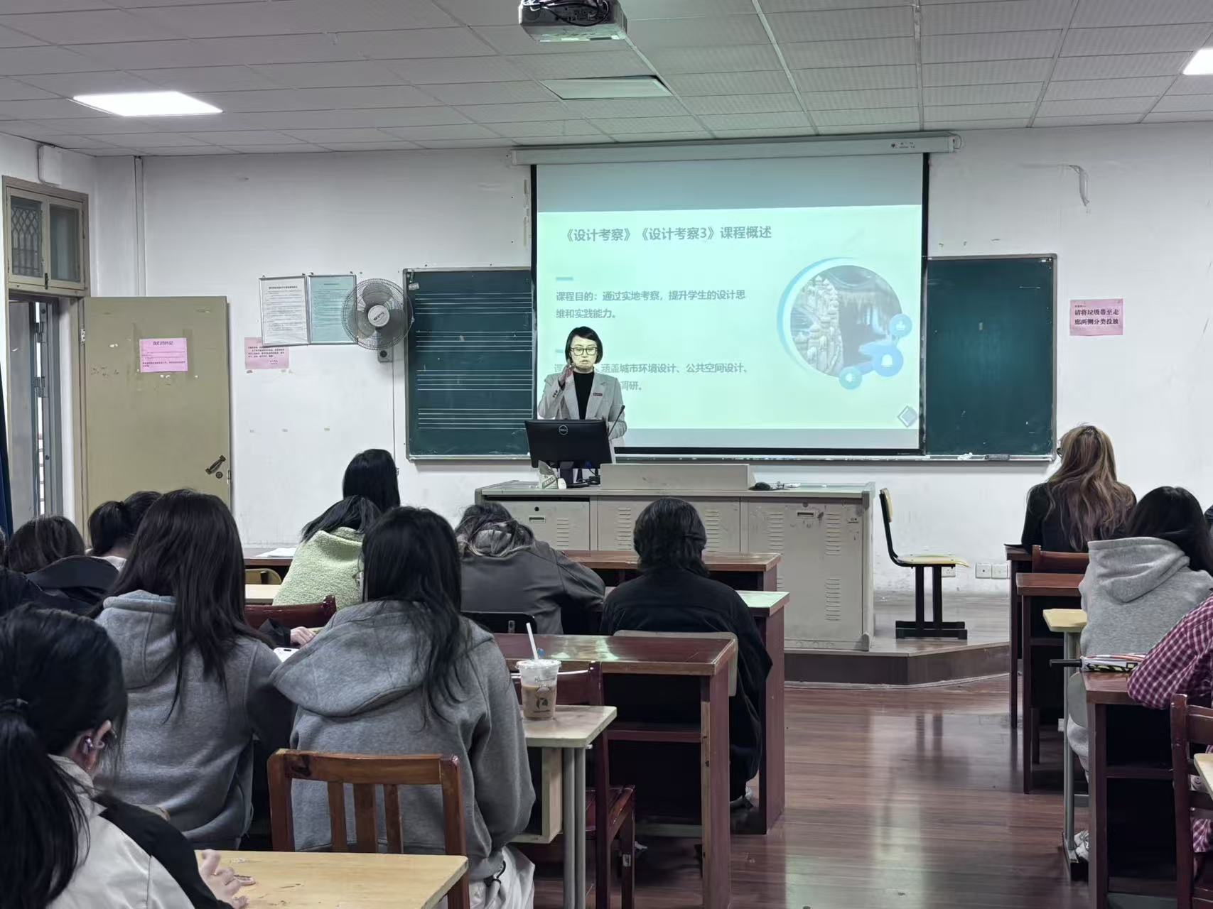 随后,刘佳妮对本次考察活动进行补充说明并作总结收尾。她详细解读了考察行程安排、任务分工及注意事项,明确了考察报告的提交要求与评价标准,提醒学生提前做好考察准备,携带好专业绘图工具、记录设备等物品。同时,她鼓励学生打破课堂局限,主动拓展专业视野,在考察中关注新旧建筑对话、地域文化与设计融合等重点,积极与老师、同学交流探讨,充分发挥主观能动性,力争在实践中提升专业核心素养。