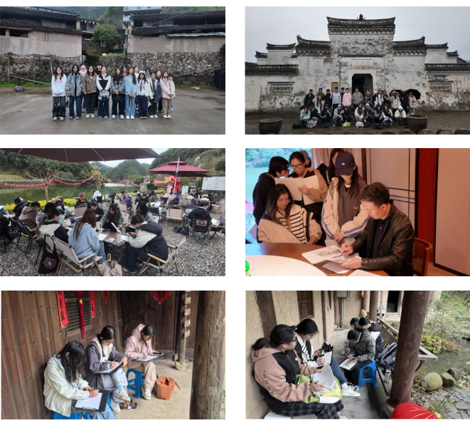 对于环境设计系的大一学生而言,写生不仅是绘画训练,更是一次真实场地的“设计启蒙”。丽水丰富的自然地貌与乡土建筑群落,为同学们提供了宝贵的空间学习样本。从上官坑自然村泥墙黛瓦的建筑,到河阳古村“一溪二坑”“四纵五横”的棋盘式布局,同学们以设计师的视角去丈量、拆解与再现环境。
