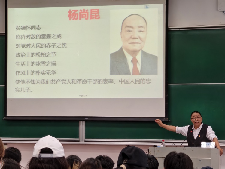 虞文清教授以“一身正气,两袖清风”为主线,从威武不能屈、两袖清风两大篇章,深入剖析了彭德怀同志在不同历史时期坚守党性、廉洁自律的感人事迹。在威武不能屈的讲述中,教授再现了彭德怀元帅的铮铮铁骨:面对李德的错误指挥,他敢于直言怒斥;面对蒋介石的刻意拉拢,他不卑不亢、坚守立场;抗美援朝战场上,他临危受命、勇破强敌;面对不切实际的作战建议,他坚持实事求是、果断决策;庐山会议上,他心系百姓、为民请命,以无畏担当诠释对党和人民的赤胆忠心。在两袖清风的篇章里,虞教授则通过彭德怀“私款公用”“改诗谦让”“拒收礼品”“与民同乐”“严管亲属”“婉拒感情纠葛”等多个生动细节,深刻诠释了他过好“金钱关”“名利关”“享乐关”“亲情关”“美色关”的清廉本色。虞教授引用杨尚昆同志的评价:“临阵对敌的雷霆之威,对党对人民的赤子之忱,政治上的松柏之节,生活上的冰雪之操,作风上的朴实无华”,勉励全体学员以彭德怀元帅为榜样,做忠诚、干净、担当的新时代青年党员。