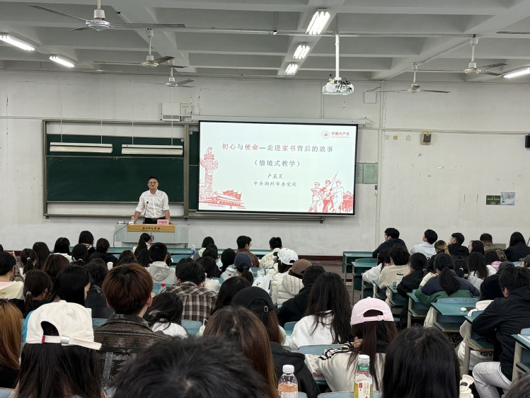 4月29日下午,艺术学院党校第三讲《走进家书背后的故事(情景式教学)》专题党课在12-315教室举行,湖州市委党校(浙江省生态文明学院)副教授、办公室主任卢晨昊受邀主讲。本次党课创新采用情景式教学模式,以红色家书为载体,深入挖掘家书背后的革命历程与精神内涵,为学员带来一堂兼具思想深度与情感温度的党性教育课。